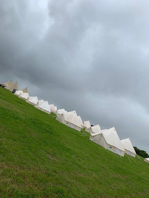 The best Tents at the festival all set up ready for the party, onsite luxury loos, private Glamping area.