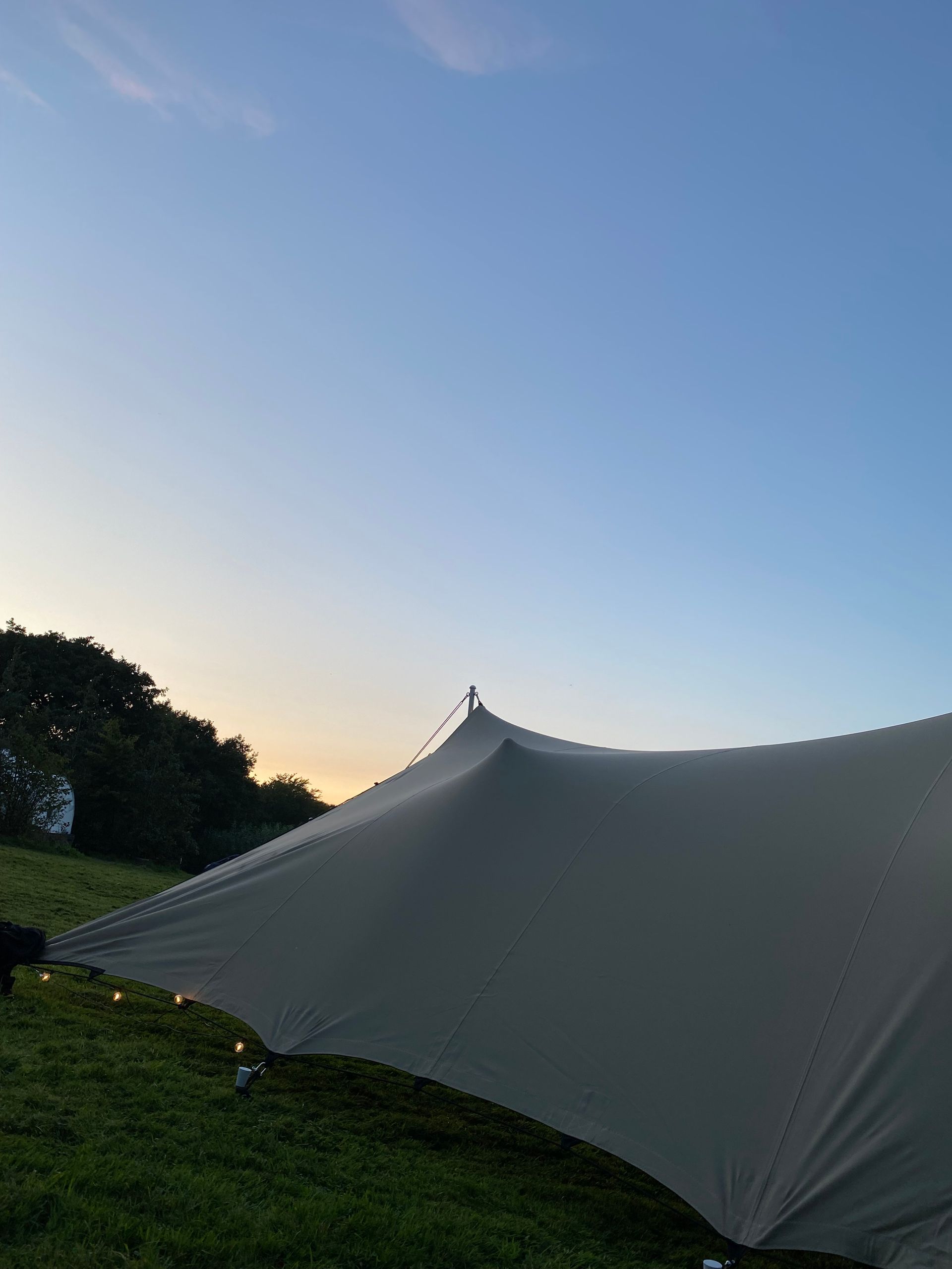 Our small Stretch tent is a great feature marque to any event which can be erected with sides open or closed at 10m x 7.5m is perfect for small gatherings for approximately up to 70 people.